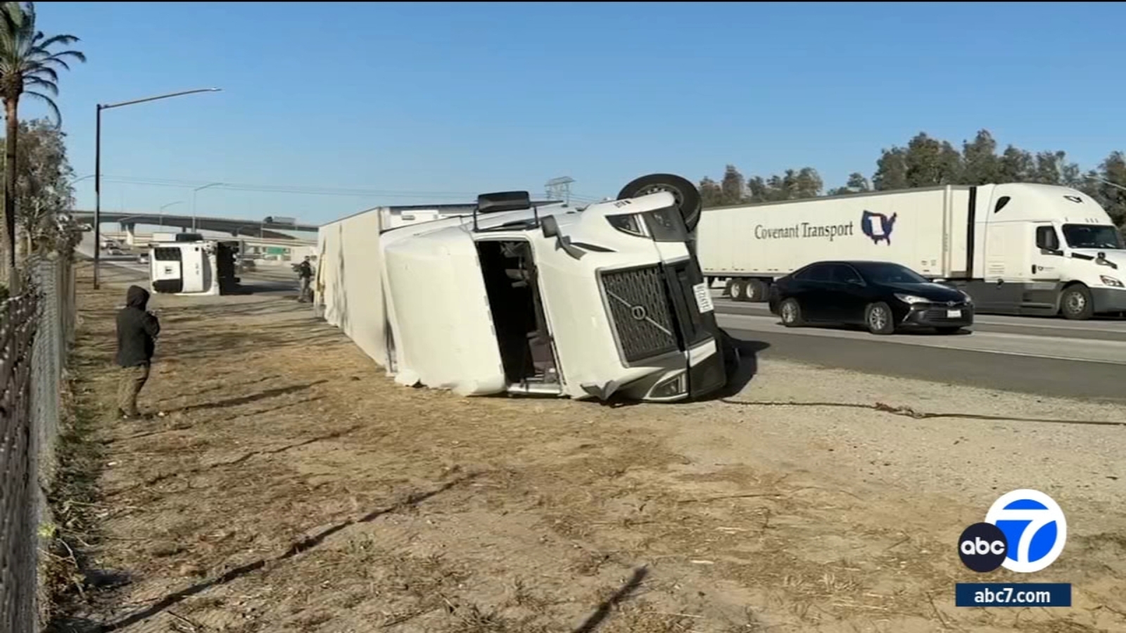 According to the California Highway Patrol, two of the five trucks overturned near the I-10/I-15 interchange in Ontario. AIR7 HD was above the …