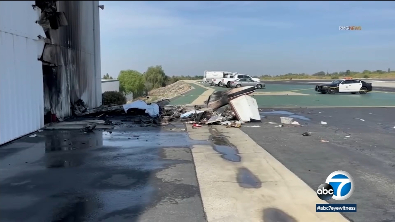 UPLAND, Calif. (KABC) — Three people are dead after a small plane crashed into a hangar at Cable Airport in Upland Sunday morning.