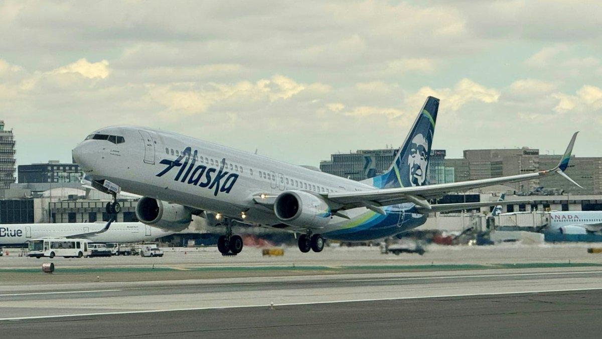 An Alaska airlines Boeing 737 is taking off from Los Angeles International AirPort (LAX) in Los Angeles, California, on March 6, 2024. The Justice …